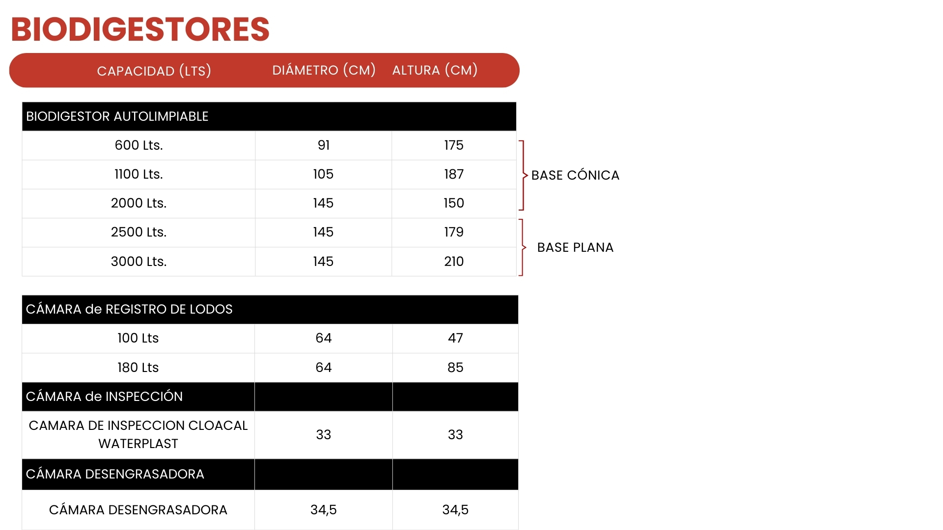 - Cámara de lodos Waterplast: diseñada para facilitar el acceso, control y mantenimiento de los sistemas de tratamiento de efluentes, permitiendo una extracción segura y eficiente de los lodos secos acumulados en el biodigestor. Su estructura ergonómica brinda acceso directo a la válvula de purga, reduciendo los costos operativos y de mantenimiento, al tiempo que simplifica el vaciado del sistema sin requerir herramientas especiales